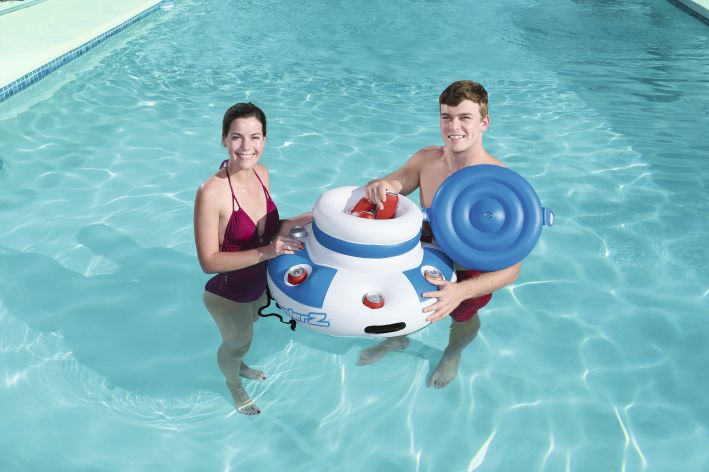 Vychlazené nápoje a horké letní počasí? S chladícím plovoucím barem to není žádný problém! Plovoucí bar má 6 držáků na Vaše oblíbené nápoje a zásobník na led nebo nápoje o objemu 12 litrů.