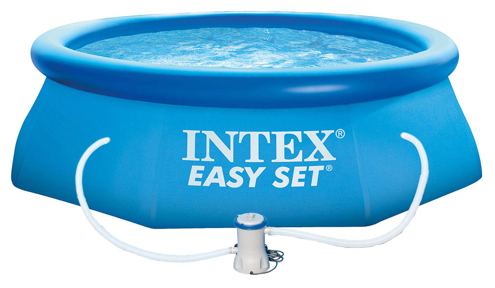 Nafukovací bazén Intex je určen pro nadzemní montáž. Nafukovací bazény Intex se vyznačují rychlou a bezproblémovou instalací. Stačí vybrat vhodné slunné místo, srovnat terén a můžeme napouštět. Nafukovací bazény mají v horní části prstenec pro nafouknutí, díky kterému je postavený bazén dostatečně pružný, aby odolal dovádění dětí.