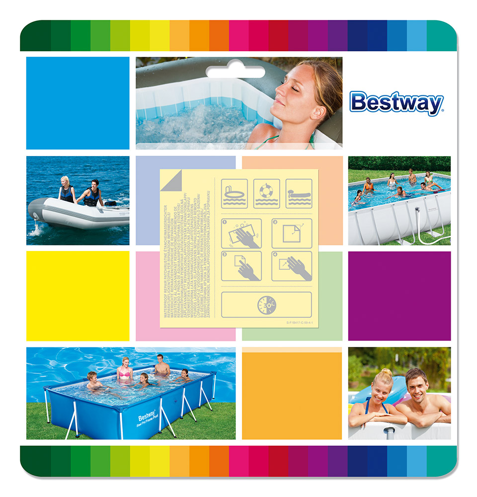 Bazénová sada záplat obsahuje 10 ks samolepicích záplat (cca 42,3 cm2).