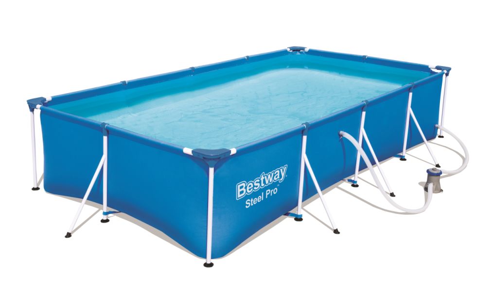 Obdélníkový bazén s kovovou konstrukcí. Nadzemní bazén pro povrchovou montáž. Mimořádně pevné stěny tohoto bazénu jsou konstruovány z materiálu Tritech™, což je 3vrstvý vyztužený materiál s polyesterovou mřížkou uloženou mezi dvěma vrstvami vysoce odolného PVC. Díky pružné konstrukci je bazén vhodný pro rodiny s dětmi.
