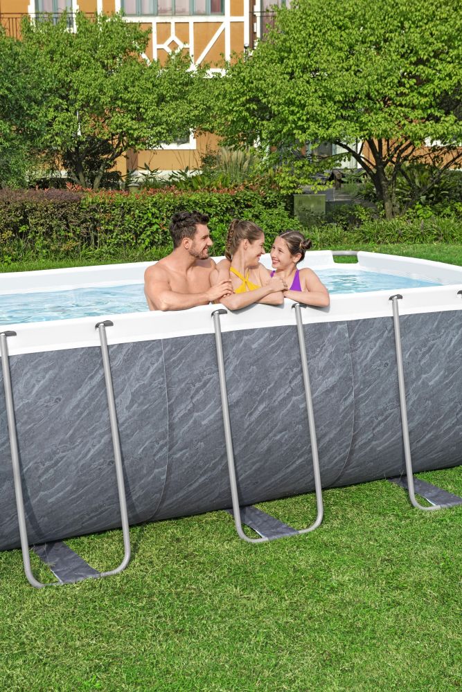 Obdélníkový bazén Bestway Steel Pro Max Marble 4,12 x 2,01 x 1,22 m. Kompletní sada: bazén, kartušová filtrace, schůdky.