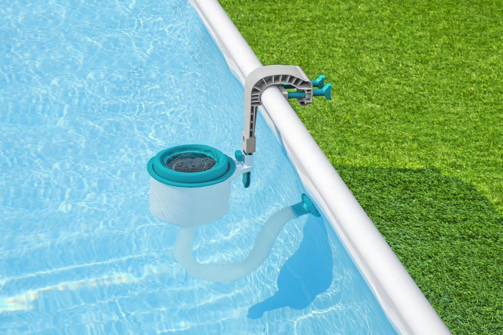 Bazénový skimmer po zavěšení na bazén sbírá hladinové nečistoty. Díky tomuto zařízení jsou sbírány plovoucí nečistoty z hladiny do filtrace.